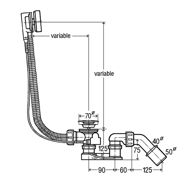 285357 / Сифон-автомат для ванны с гибкой трубой 40х50 хромированная розетка и клапан, VIEGA