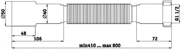 К106 / Гофра для сифона 50х40 с гайкой 1 1/2 Ани Пласт