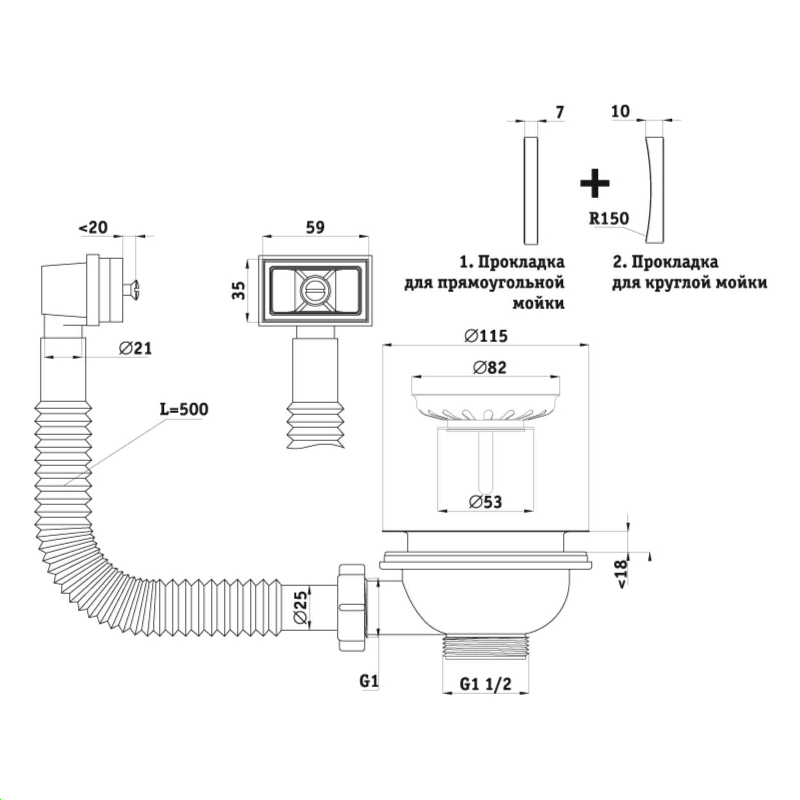 Перелив АНИ пласт N305S предназначен для использования в кухонных мойках с присоединительным размером 3.1/2" и переливом.